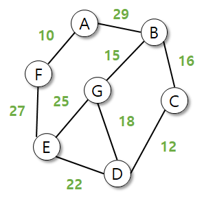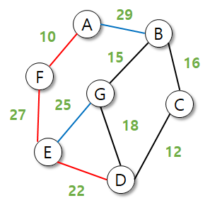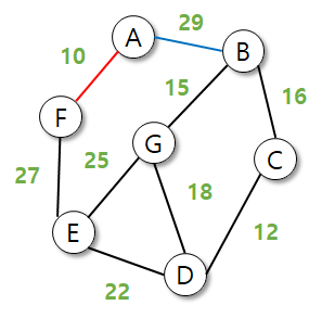 - 기존 트리에 존재하지 않으면서, 가중치가 가장 작은 간선 선택