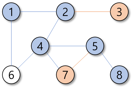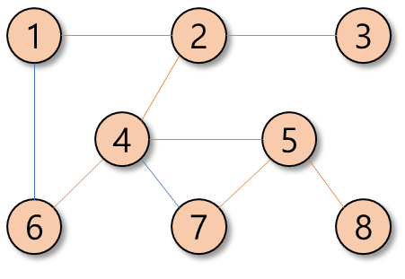 주황색 정점은 방문한 뒤 되돌아온다는 표시이다.