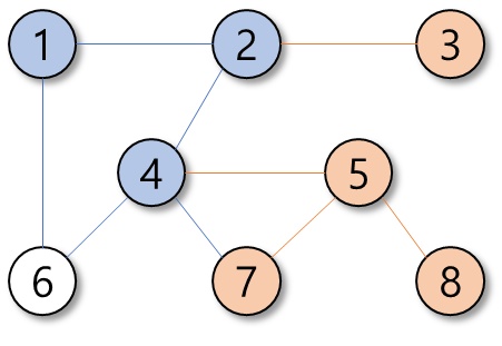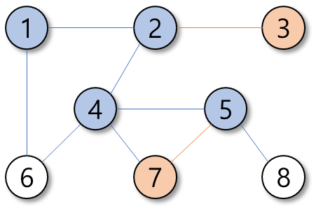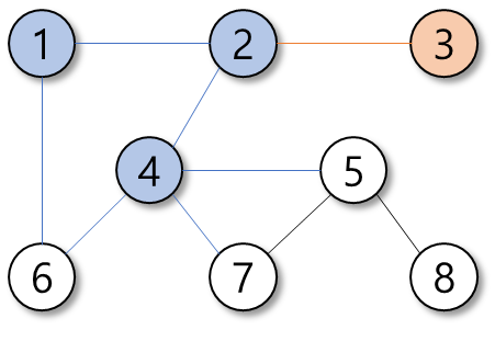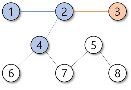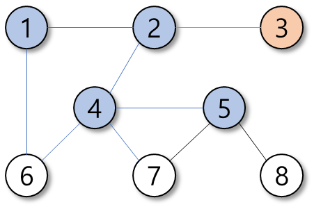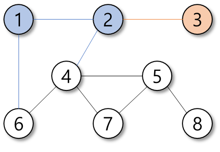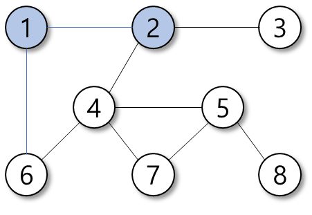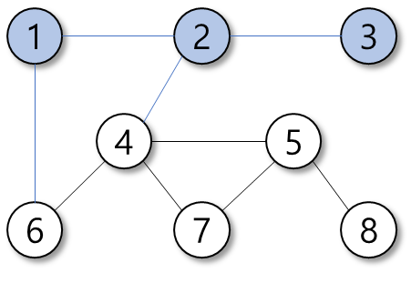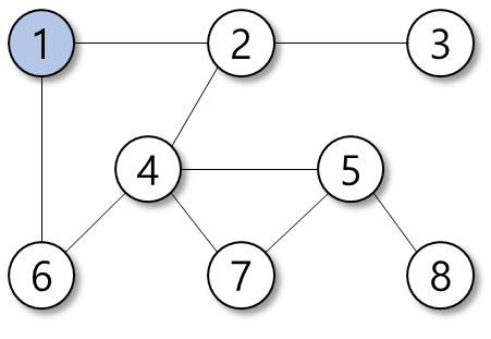 탐색의 우선순위는 정점의 번호가 작은 순이다.