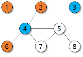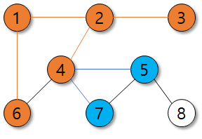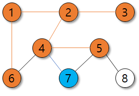 여기서 가깝다는 의미는 가중치가 적은 것이 아니라, 몇 번 만에 도달할 수 있는가를 의미한다.